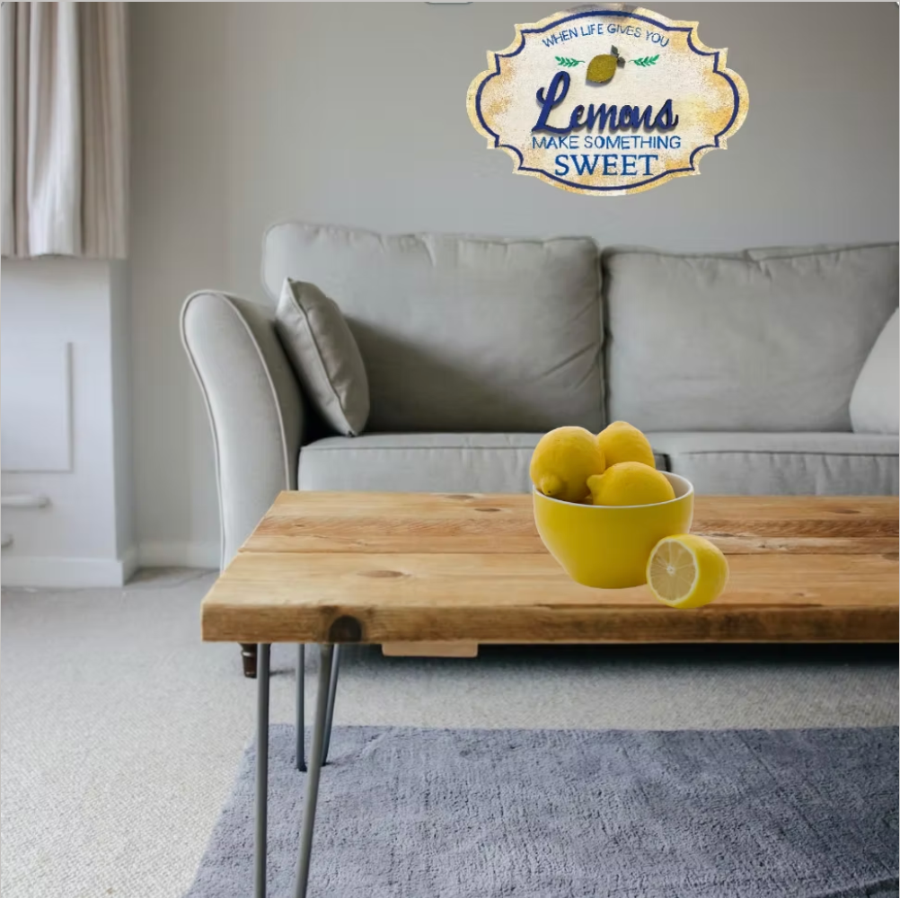 When Life gives you lemons sign. It's about 15.5 x 10.5 inches. Made in an antique finish to give it that rusted metal look. Made out of all wood.
